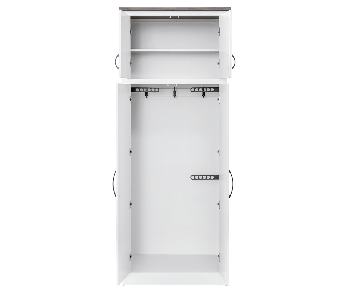 • Adjustable valet rods behind the doors
