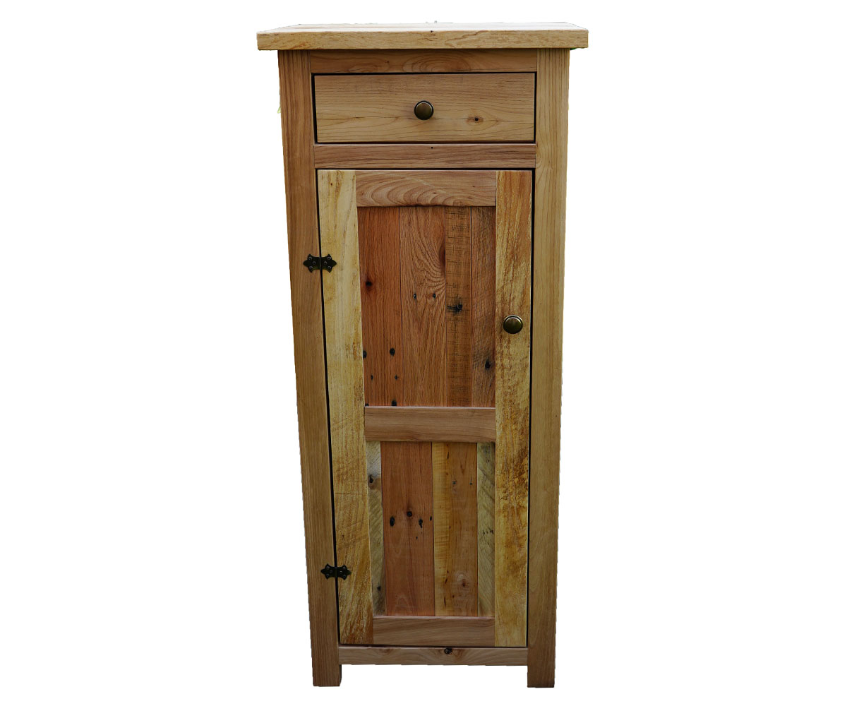 Dimensions: 20″W x 13″D x 48″H Shown With: Wood: Reclaimed Wood Pallet Features: • Two adjustable shelves behind the door Item Code: RC-17