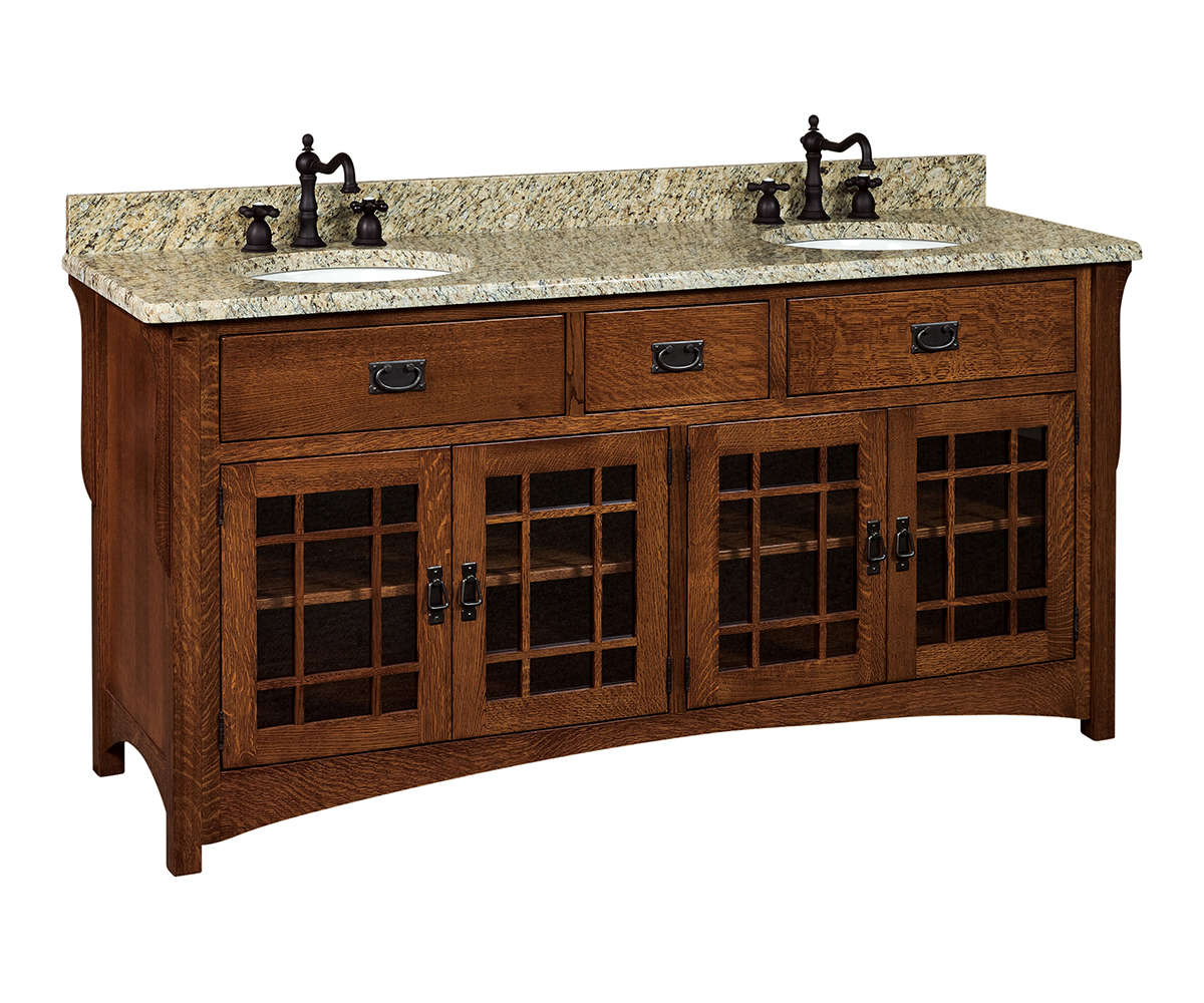 Overall Dimensions: 72″W x 22″D x 36″H Shown With: Wood: Quarter Sawn White Oak Stain: Michael’s Cherry Hardware: • 17 (knob) • 16 (pull) Countertop: Juperano Gold Dark Granite Features: • False front drawers on sides • Dovetailed drawer in center • Premium soft close undermount drawer slides • Interior drawer dimensions: 18¾”D x 6″H • Dimensions listed are with top Options: • Top needs to be purchased separately Item Code: LMLV72NT