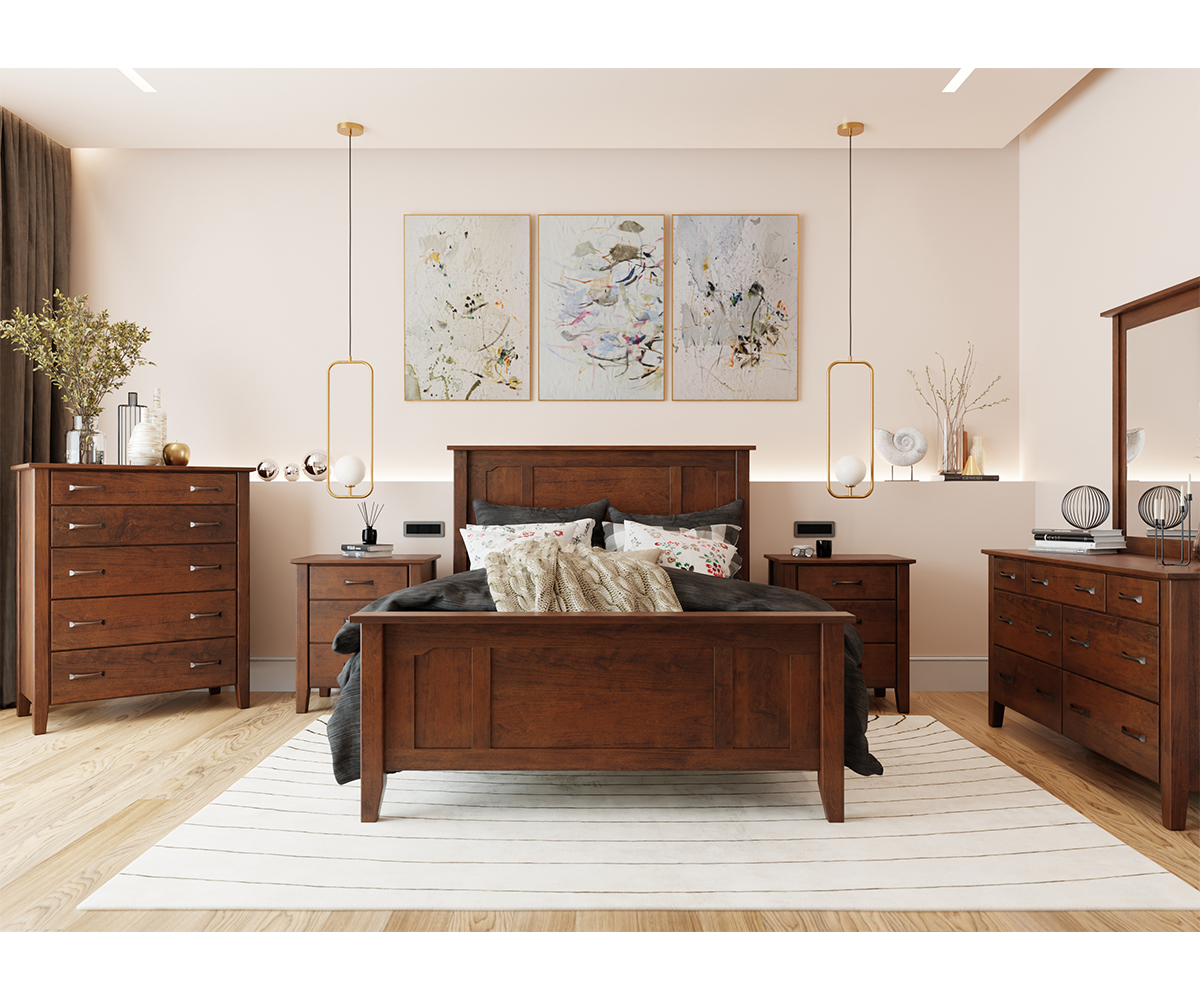 Dimensions: Queen Size: 66¾”W x 89″L Headboard: 55″H Footboard: 28″H Item Code: O527-Q This design is also available in the following sizes: O527-K: King Size – 82¾”W x 89″L O527-F: Full Size – 60¾”W x 84″L O527-T: Twin Size – 45¾”W x 84″L